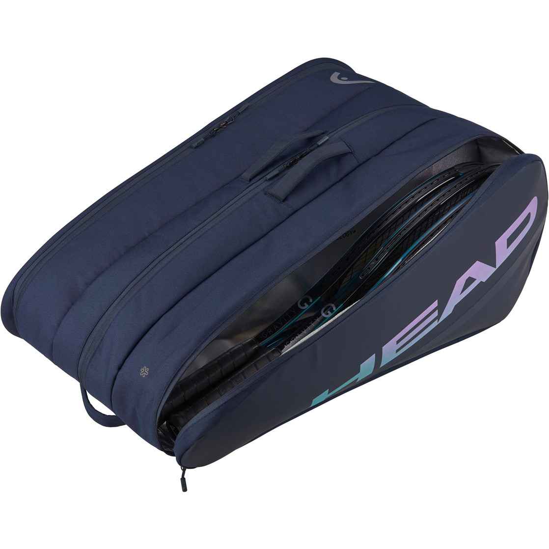 Deze Head Tour Racket Bag XL tennistas uitgevoerd in de stijlvolle donkerblauwe kleur, is nieuw in 2025 en komt uit de Head Tour tassencollectie. De tas beschikt over 1 ruim racketvak en 2 andere ruime hoofdvakken, er is ruimte voor maximaal 12 rackets. Er wordt in 1 van deze 3 hoofdvakken gebruik gemaakt van de CCT technologie (Climate Control Technology) om de rackets te beschermen tegen weersinvloeden zoals (extreme) hitte en kou. Verder heeft de tas één accessoires vak aan de binnenkant en één accessoires vak aan de buitenkant van de tas. Ook is er een apart schoenenvak te vinden in deze tas. En deze tennistas van Head heeft twee verstelbare, comfortabele schouderbanden waardoor de tas gemakkelijk op de rug kan worden gedragen.