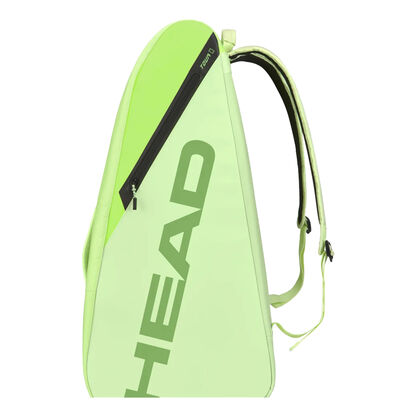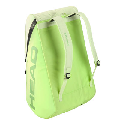 De stijlvolle Head Tour Racket Bag XL tennistas in de stijl van de Head Extreme rackets, in de kleurstelling geel/lime, beschikt over drie hoofdvakken, twee kleinere accessoires vakken, een apart schoenenvak en over twee verstelbare schouderbanden.