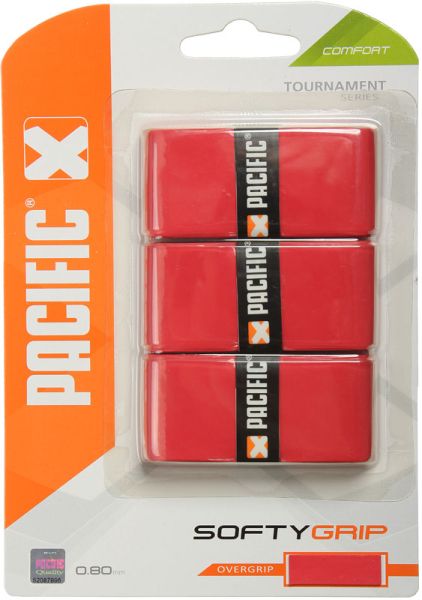 De PacificSofty overgrips zijn zeer plakkerig, duurzaam en comfortabel. Deze overgrip is gemaakt van sterk synthetisch materiaal zonder perforaties. De dikte van de overgrip relatief dikker met een dikte van 0.80 mm. Verpakt per 3 stuks in de kleur rood.