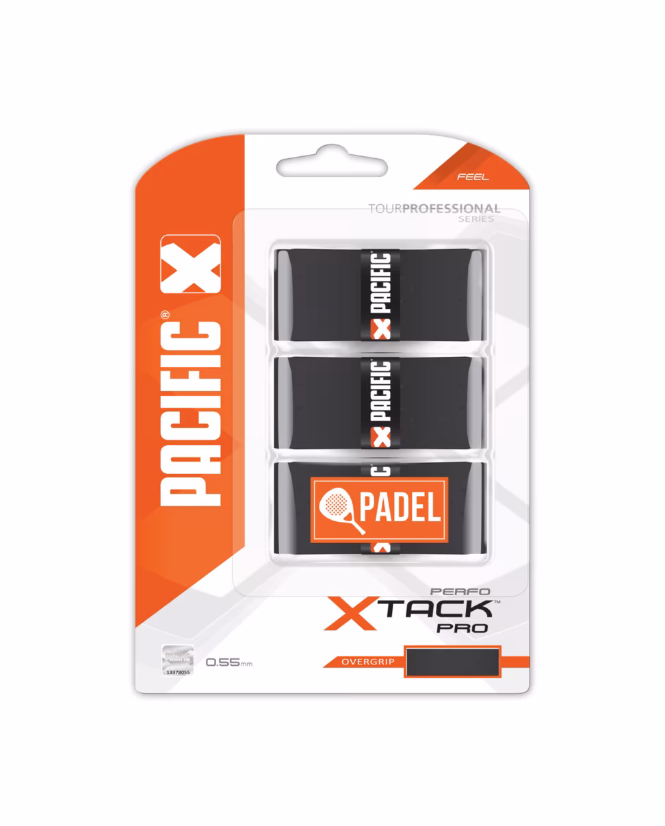 De Pacific X Tack Pro Perfo Padel overgrips zijn zeer plakkerig, duurzaam en comfortabel. Deze overgrip is gemaakt van sterk synthetisch materiaal met perforaties. Deze perforaties zorgen voor extra grip, gevoel en zweet wordt beter geabsorbeerd. De dikte van de overgrip is 0.55 mm. Het zijn overgrips bedoeld voor een padelracket. (voor een tennisracket is deze overgrip niet lang genoeg) Verpakt per 3 stuks in de kleur zwart.