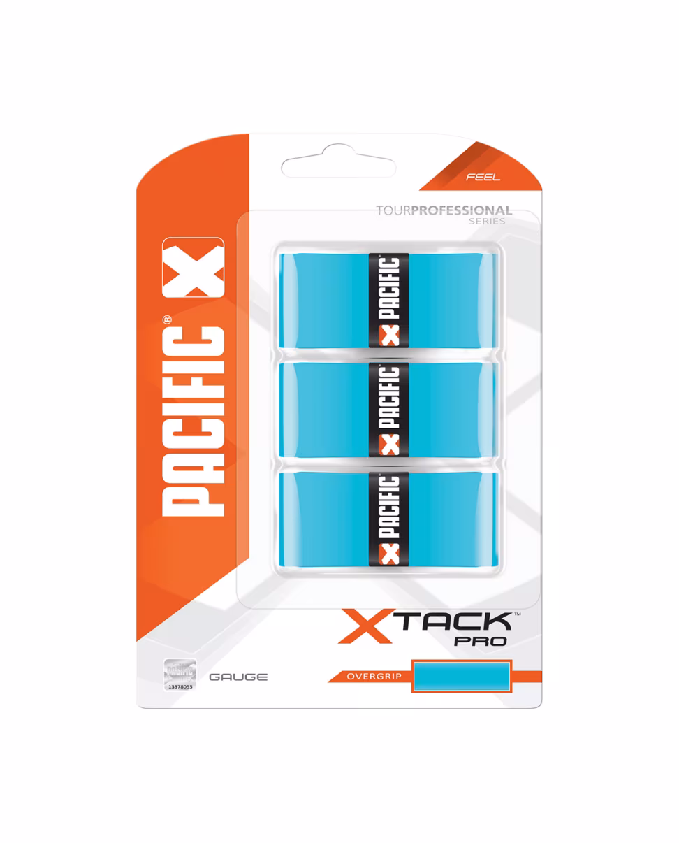 De Pacific X Tack Pro overgrips zijn zeer plakkerig, duurzaam en comfortabel. Deze overgrip is gemaakt van sterk synthetisch materiaal zonder perforaties. De dikte van de overgrip is 0.55 mm. Verpakt per 3 stuks in de kleur lichtblauw.