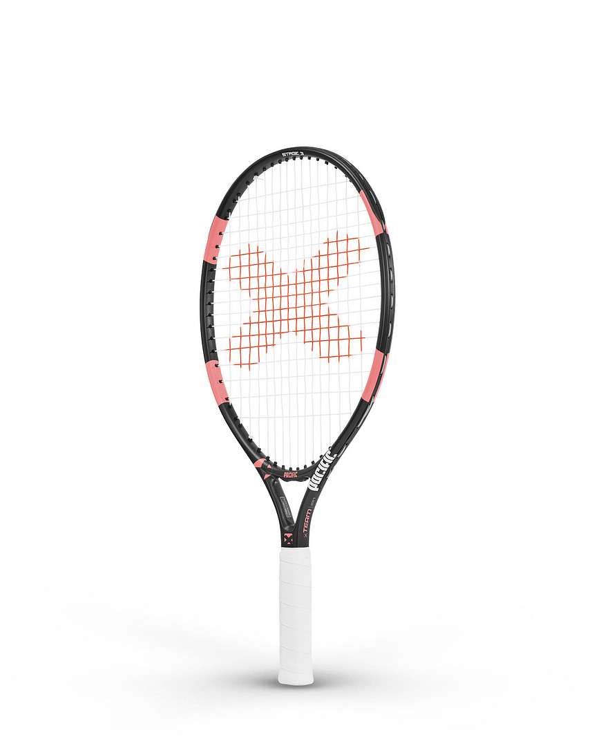 Deze Pacific X Team 21 Inch racket is gemaakt van fused materiaal, dit is een combinatie van grafiet en aluminium. Het is een jeugdracket voor kinderen in de leeftijd van ongeveer 4 tot 6 jaar. Het racket weegt 200 gram en heeft een racketblad van 90 inch. Het snarenpatroon is 16×17.