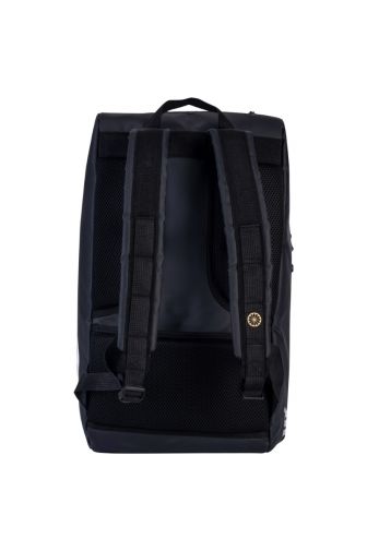 De The Indian Maharadja Padel Bag Gold PLR Black is een zeer stijlvolle padeltas in de zwart. Er zijn 2 hoofdvakken die bieden plaats voor meerdere padelrackets en er is verder voldoende ruimte voor andere spullen als padelballen, kleding en een handdoek. Ook zijn er 2 kleinere accessoiresvakken aan de zijkanten van de tas te vinden. De verstelbare, gewatteerde schouderbanden zorgen ervoor dat de tas comfortabel op de rug gedragen kan worden. Verder is er een handvat aan de bovenkant van de tas.