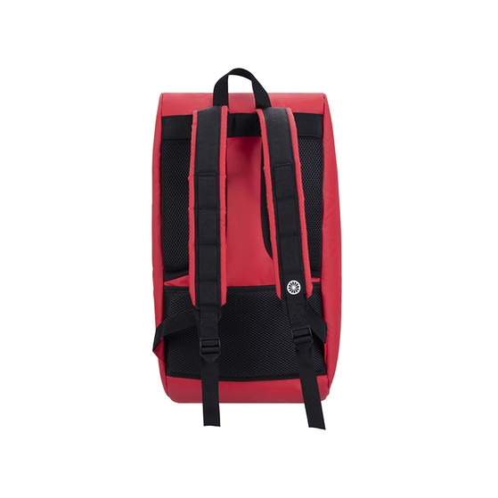 De The Indian Maharadja Padel Bag PLR is een zeer stijvolle padeltas in de basiskleur rood. Er zijn 2 hoofdvakken die bieden plaats voor meerdere padelrackets en er is verder voldoende ruimte voor andere spullen als padelballen, kleding en een handdoek. Ook zijn er 2 kleinere accessoiresvakken aan de zijkanten van de tas te vinden. De verstelbare, gewatteerde schouderbanden zorgen ervoor dat de tas comfortabel op de rug gedragen kan worden. Verder is er een handvat aan de bovenkant van de tas.