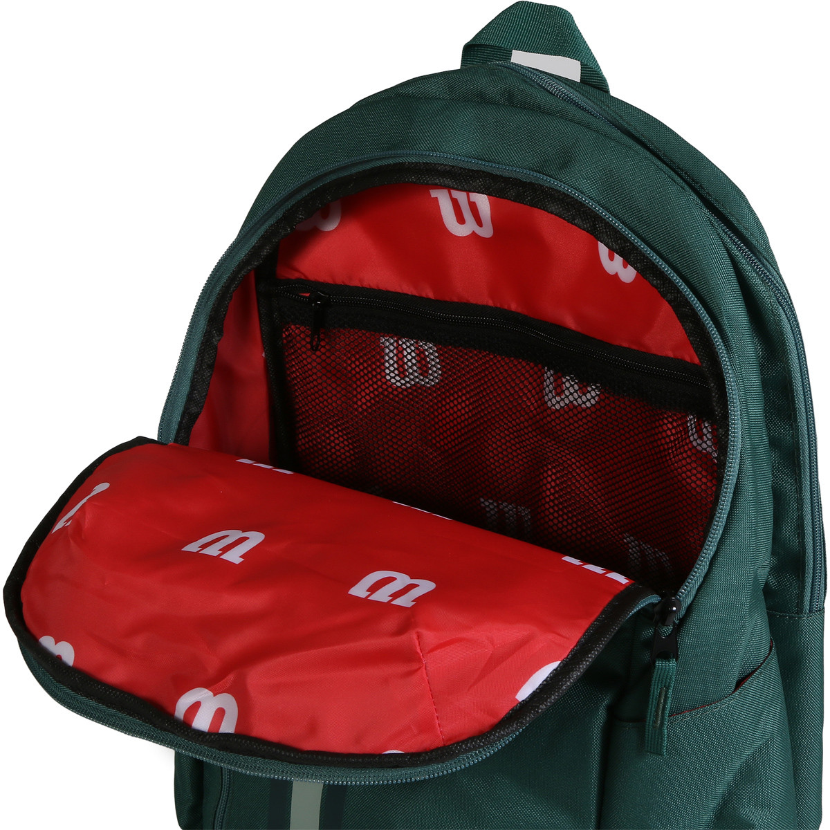 De stijlvolle Wilson Team Backpack 2025 is uitgevoerd in de kleur groen. Er zijn 2 hoofdvakken waarvan het achterste hoofdvak het racketvak is. Hier kunnen 1 of 2 rackets worden opgeborgen. Verder is er aan de binnenkant van het voorste hoofdvak een klein accessoires vak te vinden voor uw kleinere spullen zoals sleutels, mobiele telefoon en uw portemonnee. Er is ook nog een extra accessoires vak aan de voorkant van de tas te vinden. Tot slot kan deze Wilson rugzak uitstekend op de rug worden gedragen voor de 2 comfortabele schouderriemen.